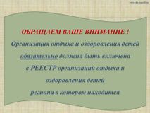 1) заявление от родителя (законного представителя) ребенка о предоставлении путевки с отметкой о согласии на обработку персональных данных заявителя (ЗАПОЛНЯЕТСЯ У НАС В ОФИСЕ);
